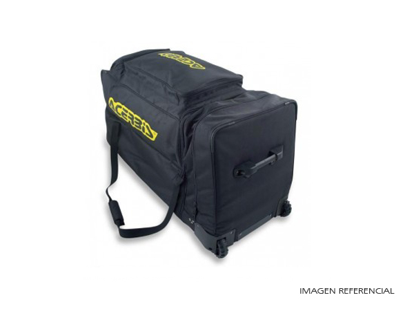 Ruedas más grandes para el transporte en un terreno irregular. base y marco en plástico reforzado. Dividido compartimentos internos para el casco y ropa, y un bolsillo de malla elástica interna adicional. compartimento externo para botas de plástico reforzado utiliza en todas las áreas de estrés. Utiliza protección de goma en las esquinas. Incluye alfombra alfombra-como para cambiar en condiciones sucias, manejables desde el bolsillo lateral. El almacenamiento interno para gafas, extraíble. bolsillos adicionales en el exterior Uso: Bolso de carreras, almacena toda engranaje moto.